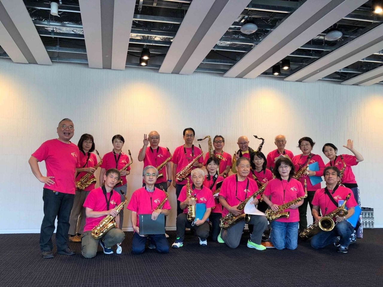 ザッキー先生&メグムン先生と一緒に16人のサックス隊員が参加しました。