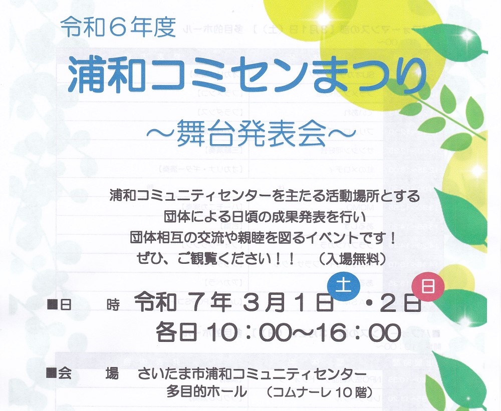 3/5(日)は浦和コミセンまつり