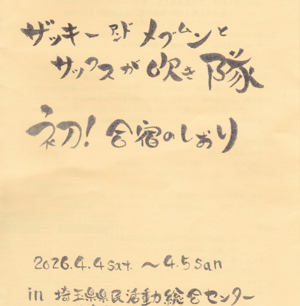 『ザッキー&メグムンとサックスが吹き隊20周年記念の合宿』があります